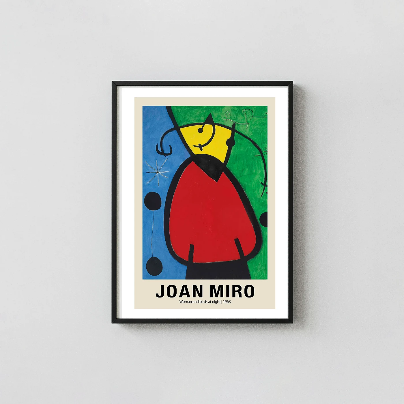 Authentic Joan Miro Poster Woman and Birds at Night 1968 is built for buyers who want joan miro prints with real wall presence, not filler decor. The print is available in multiple sizes, with digital download support for faster custom framing.