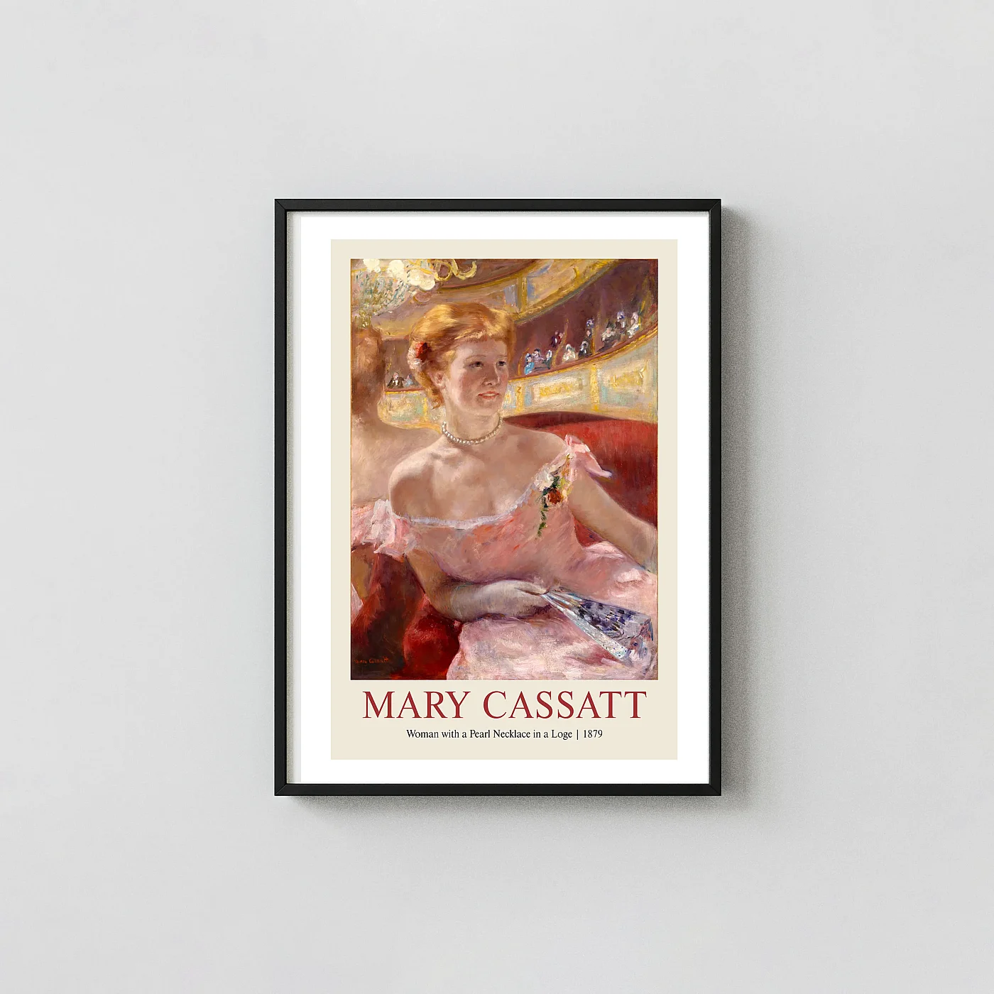 Authentic Mary Cassatt poster Woman with a Pearl Necklace in a Loge is built for buyers who want mary cassatt posters with real wall presence, not filler decor. The print is available in multiple sizes, with digital download support for faster custom framing.