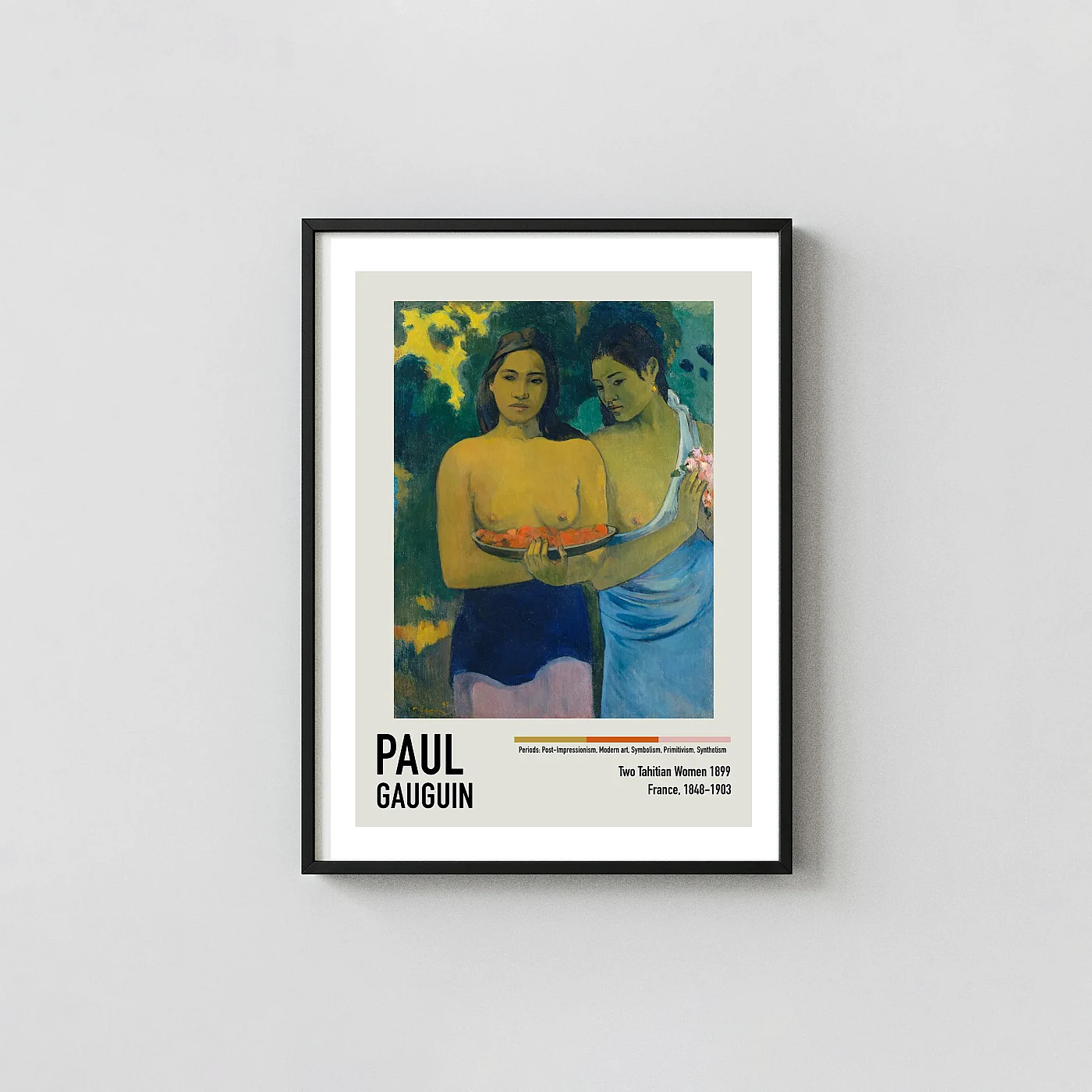 - Gallery feel: Authentic Paul Gauguin art print Two Tahitian Women 1899 Fine brings classic art language into a modern room with clean reproduction and balanced wall presence.