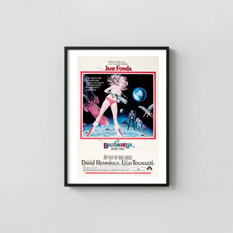 Own the iconic 1968 Barbarella poster featuring Jane Fonda. This premium quality sci-fi movie poster wall art print is perfect for collectors. Buy now!