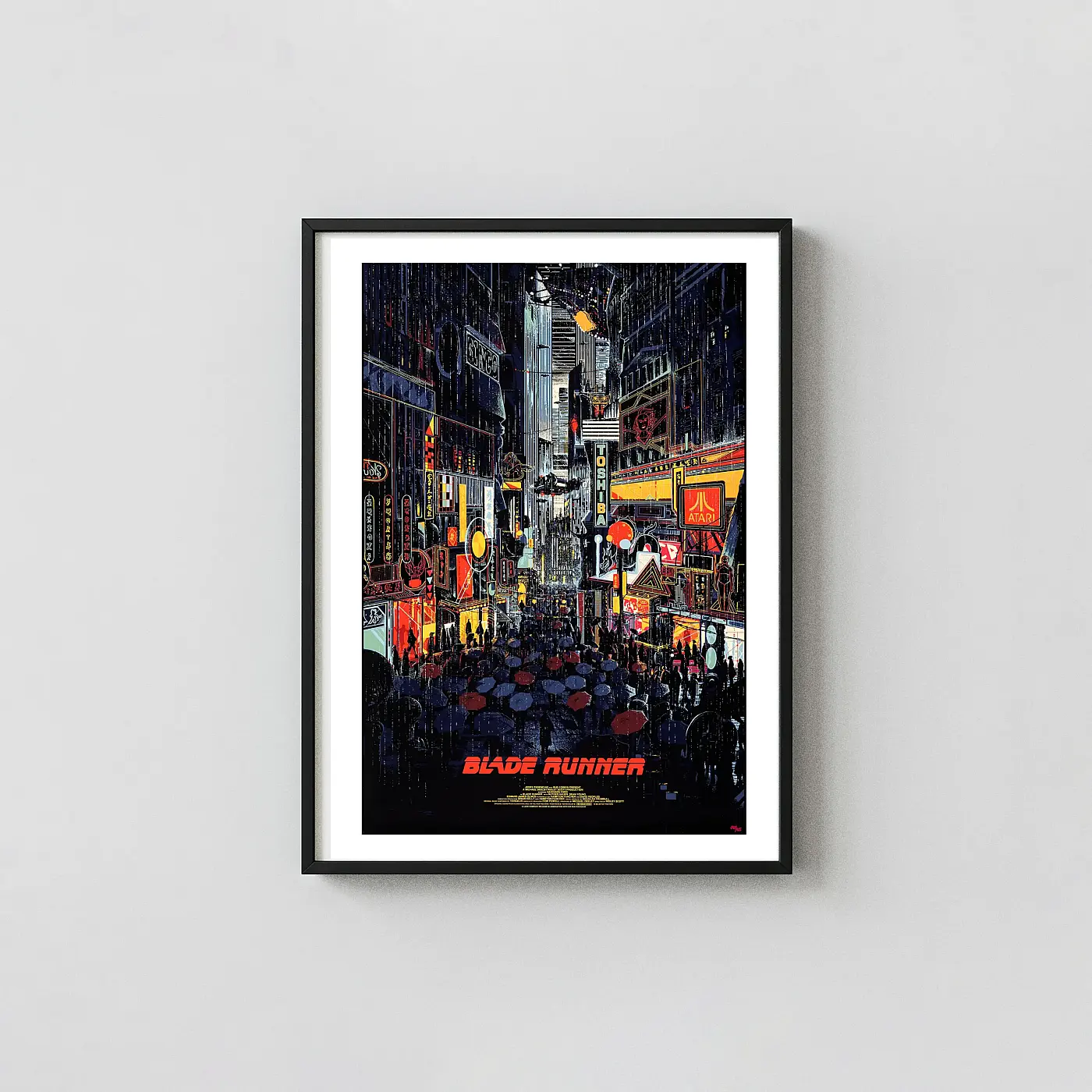 Experience the dystopian, rain-soaked streets of Neo-Los Angeles with this stunning Kilian Eng Blade Runner poster. Iconic cyberpunk movie art for collectors.