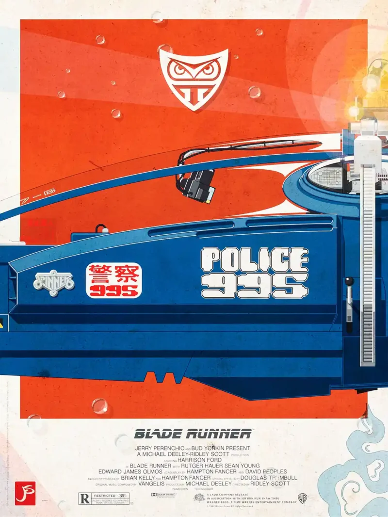 Blade Runner Poster | Spinner Police Car Retro Sci-Fi Movie Art by Jakob Staermose