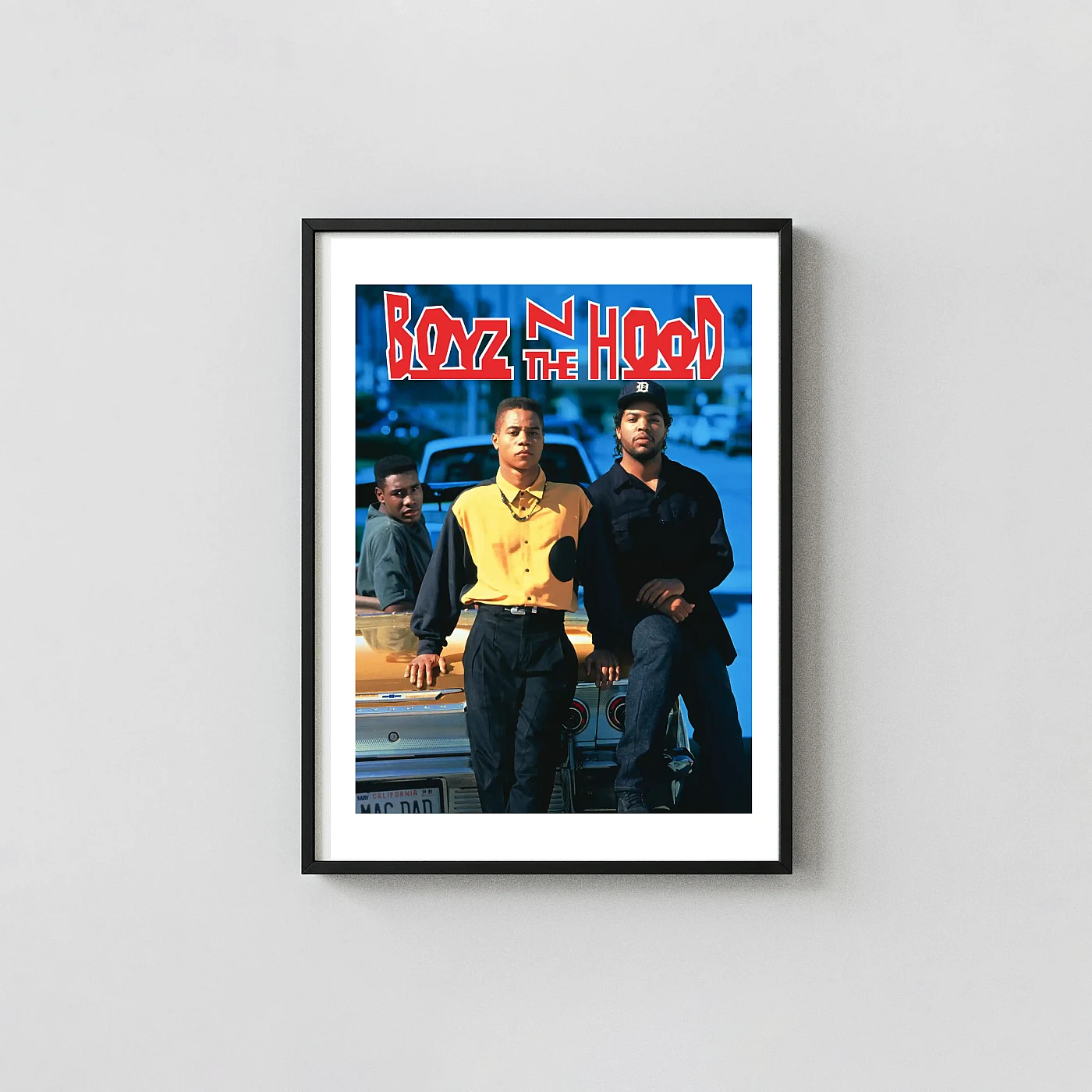 Capture the essence of 90s cinema with this powerful Boyz N the Hood wall art. This poster features the legendary trio—Cuba Gooding Jr., Ice Cube, and Morris Chestnut—standing against the backdrop of their South Central L.A. neighborhood, leaning on an iconic gold lowrider. As a seminal piece of urban filmmaking, this print perfectly encapsulates the drama, friendship, and struggle depicted in John Singleton’s classic masterpiece. This is a must-have piece of decor for serious film historians and fans of groundbreaking American cinema.