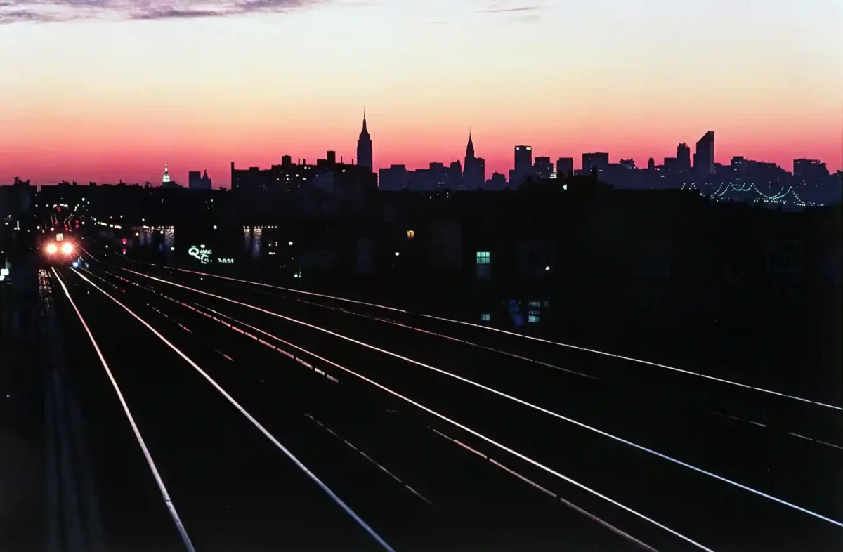 This magnificent wall art print captures the raw, romantic energy of New York City through the lens of legendary photographer Bruce Davidson. Titled Queens, New York (Sunset), this iconic image frames the stark geometry of elevated train tracks leading toward the distant, silhouetted Manhattan skyline, including the visible Empire State Building. The brilliant contrast between the vibrant magenta and pink twilight sky and the deep, shadowy foreground creates a breathtaking, cinematic feel. This piece is a powerful representation of 20th-century urban life and photojournalism, bringing profound depth and atmosphere to any space.