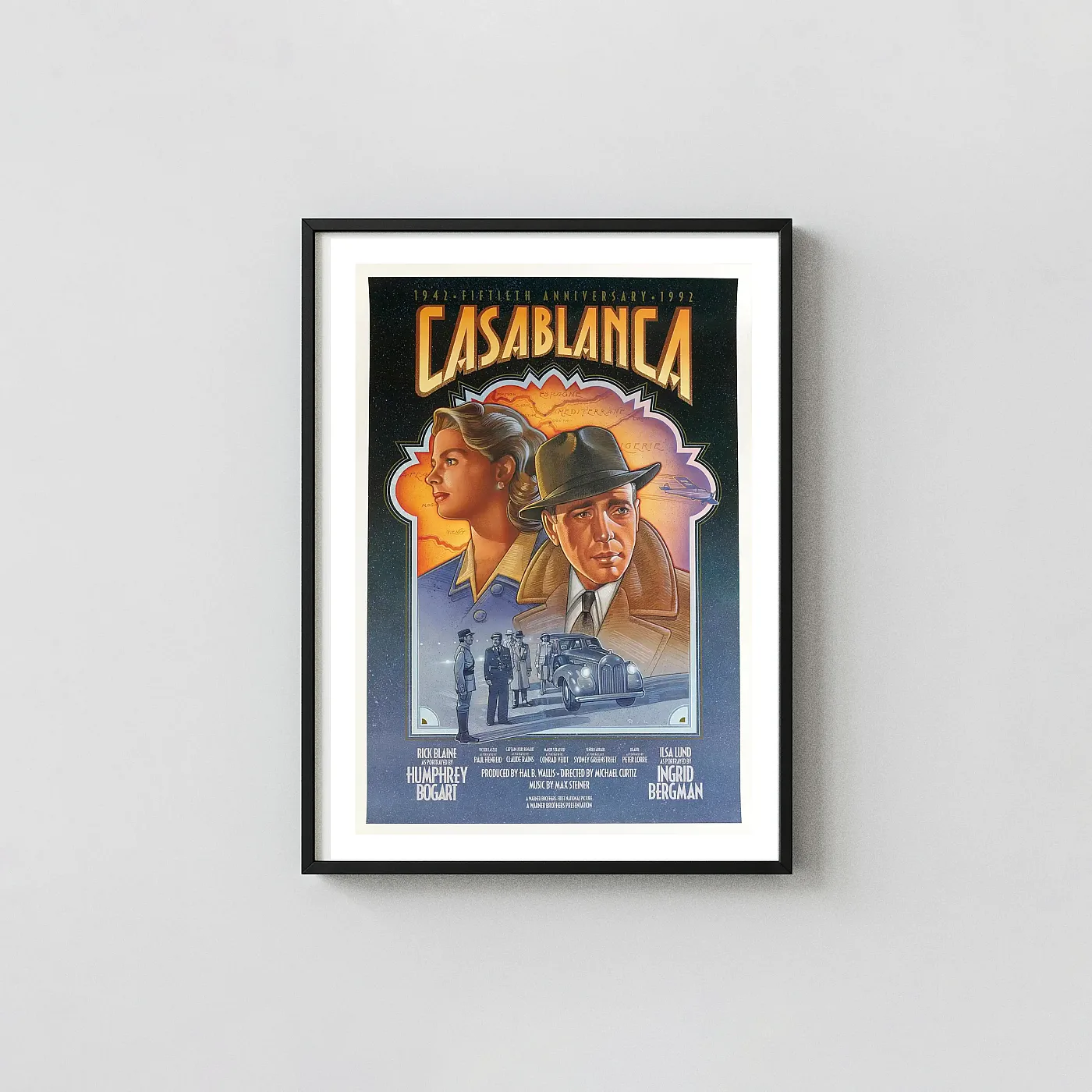 Casablanca Movie Poster Vintage Rick Blaine & Ilsa Lund is built for buyers who want movie posters with real wall presence, not filler decor. The print is available in multiple sizes, with digital download support for faster custom framing.