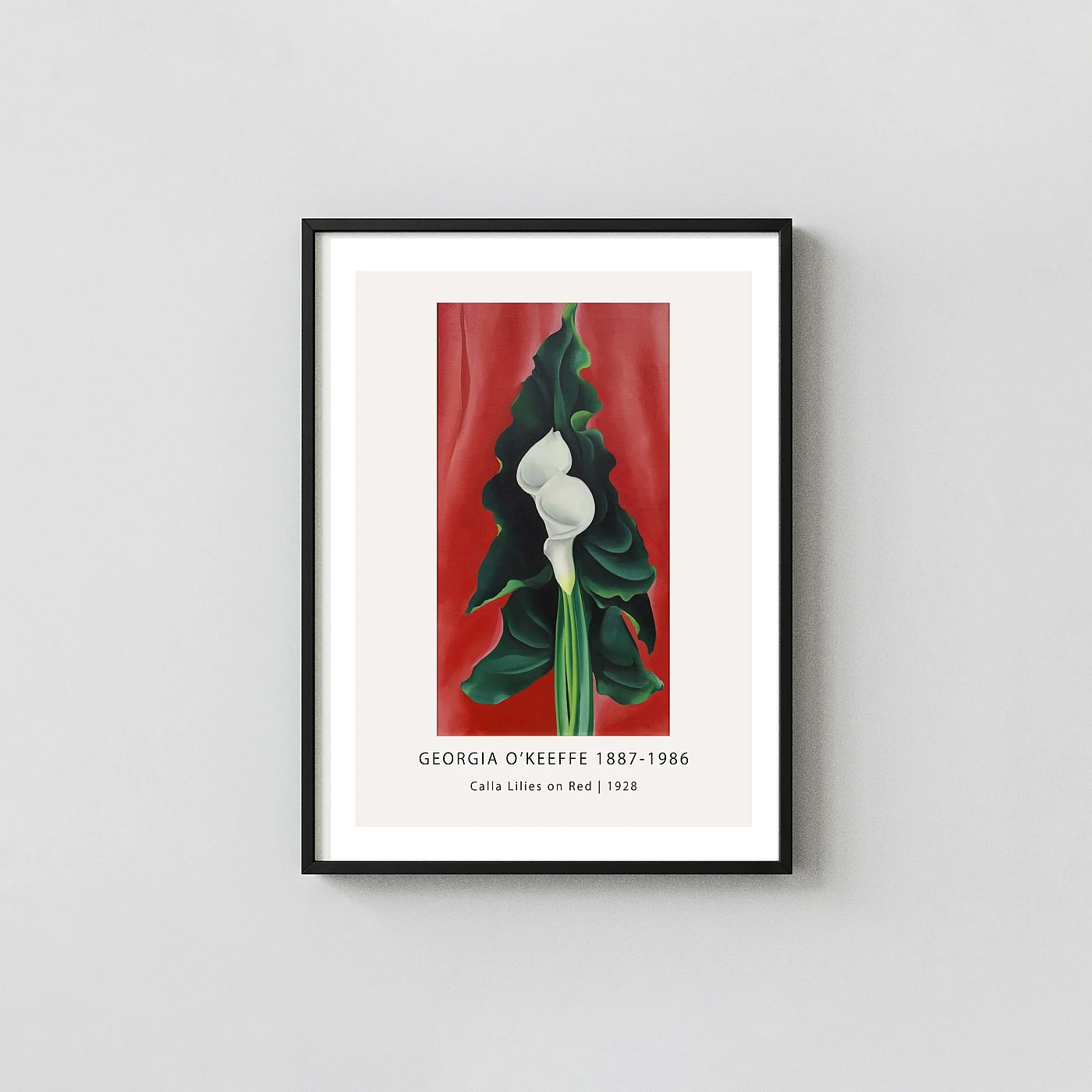 - Gallery feel: Classic Georgia O'Keeffe print Calla Lilies on Red 1928 Fine Art Poster brings classic art language into a modern room with clean reproduction and balanced wall presence.