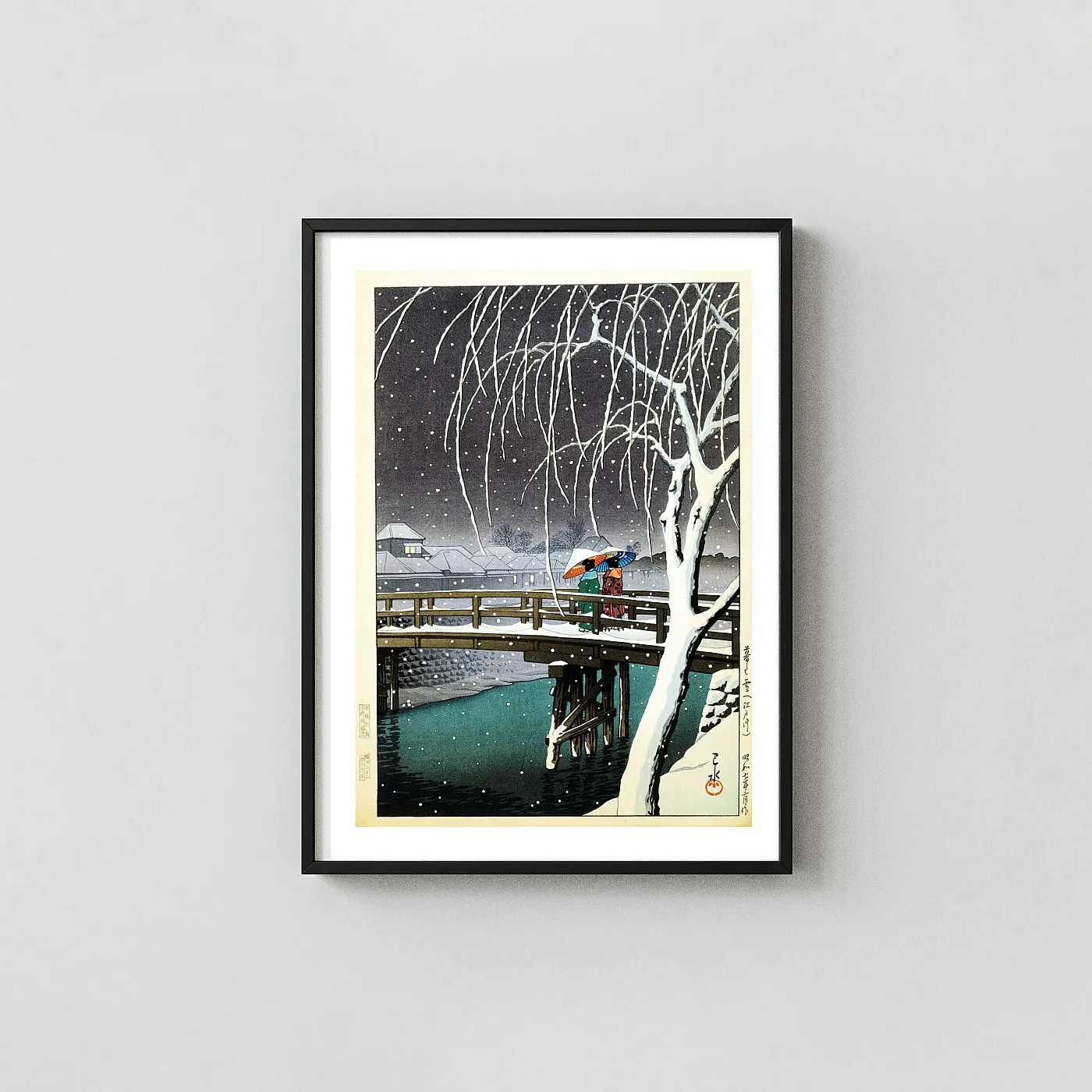 Classic Hasui Kawase art print Evening Snow Edo River 1932 Japanese is built for buyers who want kawase hasui prints with real wall presence, not filler decor. The print is available in multiple sizes, with digital download support for faster custom framing.