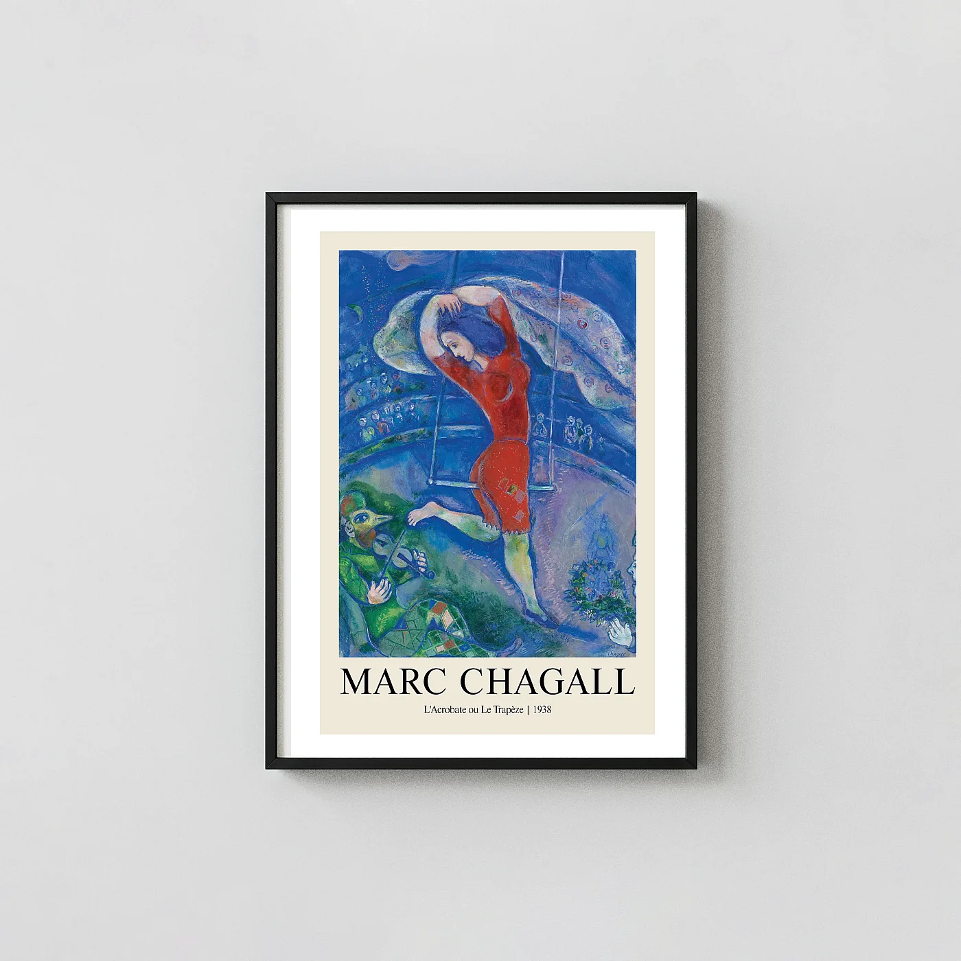 - Gallery feel: Classic Marc Chagall Acrobat art print brings classic art language into a modern room with clean reproduction and balanced wall presence.