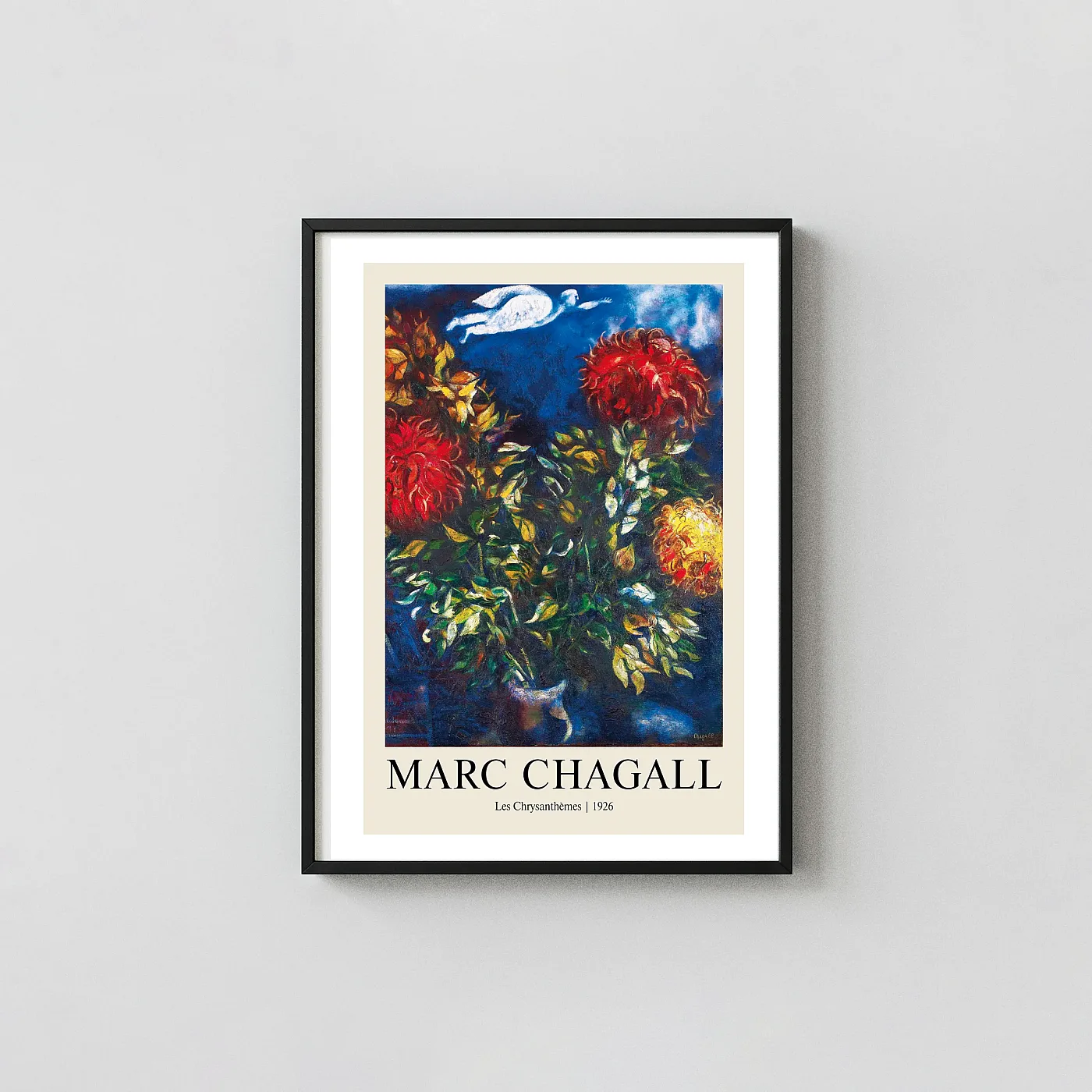 Classic Marc Chagall Poster Les Chrysanthèmes 1926 Vintage Floral Art is built for buyers who want marc chagall prints with real wall presence, not filler decor. The print is available in multiple sizes, with digital download support for faster custom framing.