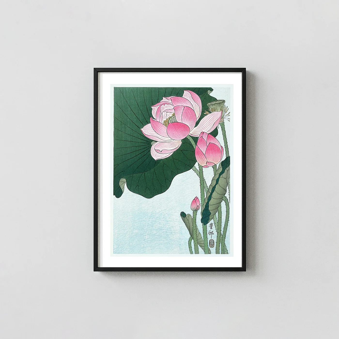 Classic Vintage lotus art print is built for buyers who want ohara koson prints with real wall presence, not filler decor. The print is available in multiple sizes, with digital download support for faster custom framing.