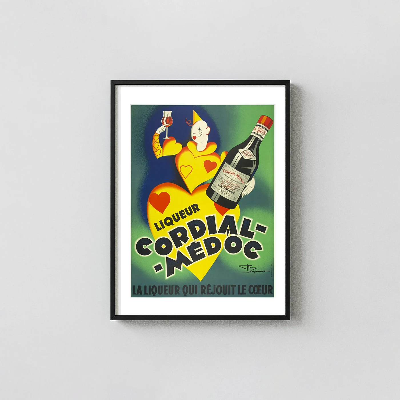 Cordial Medoc Liqueur Poster by Henri Lemonnier (Vintage French Advertising Print) is built for buyers who want vintage alcohol and liquor posters with real wall presence, not filler decor. The print is available in multiple sizes, with digital download support for faster custom framing.