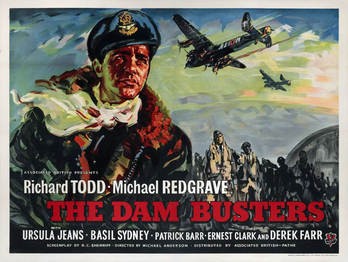 Anderson directed the 1954 Associated British Picture Corporation production from a R.C. Sherriff screenplay, with Michael Redgrave as Barnes Wallis alongside Richard Todd, and a score by Eric Coates whose Dam Busters march became one of the most recognisable pieces of British film music ever written. The film’s influence extended far beyond its immediate reception — the low-altitude bomber run sequence influenced the Death Star trench run in Star Wars, and the film has never stopped being the benchmark for the British war genre. This war film wall art puts that history on your wall.