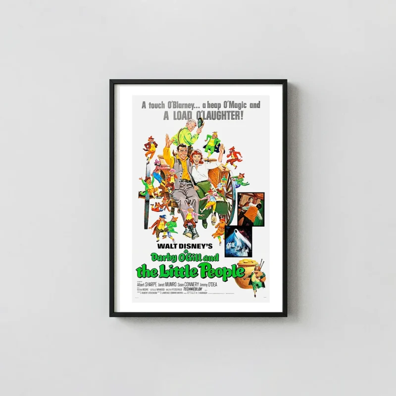 Relive the magic of Darby O’Gill and the Little People with this iconic fantasy movie poster. Features leprechauns, King Brian, and Sean Connery. Premium quality wall art for fans. Buy now!