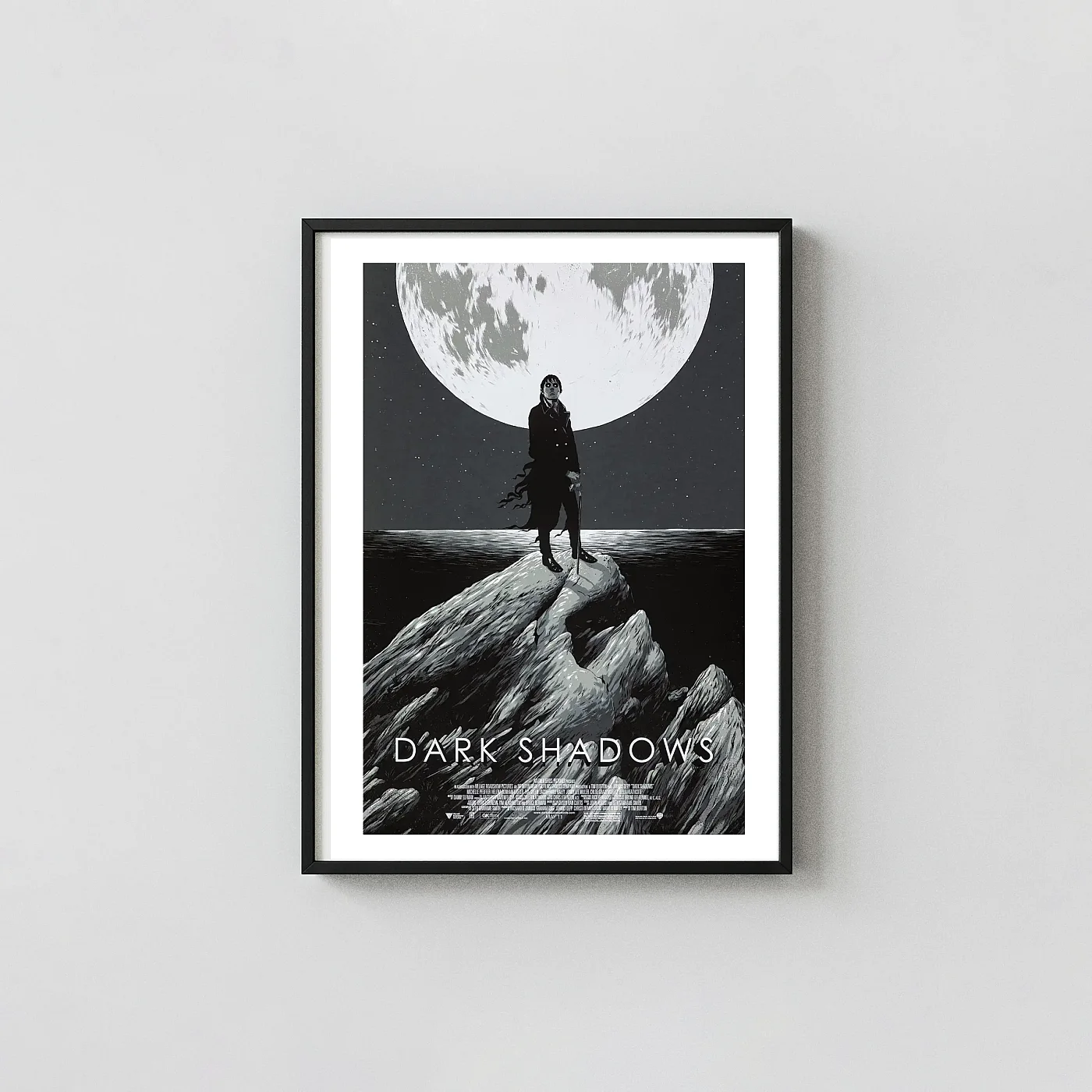 Whether you are a longtime fan of the original 1960s television series or discovered the legendary vampire through the 2012 cinematic adaptation, this poster resonates with dramatic flair. The intricate detail in the rocky landscape and the character’s expression make this print a compelling visual narrative. Add a touch of vampiric mystery and designer movie memorabilia to your home, office, or dedicated viewing room. Celebrate the quirky horror and unforgettable style of Tim Burton and Johnny Depp with this iconic cinematic image.