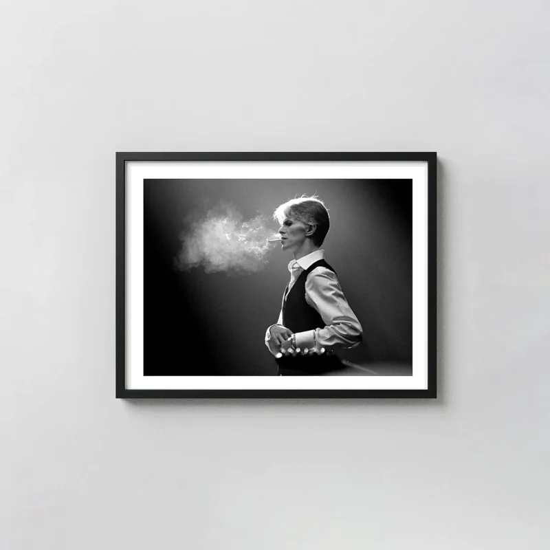 This David Bowie print captures the man at the precise intersection where art and persona were indistinguishable from one another — cigarette in hand, smoke curling, the whole image radiating the specific brand of cool that no one has come close to replicating before or since.
