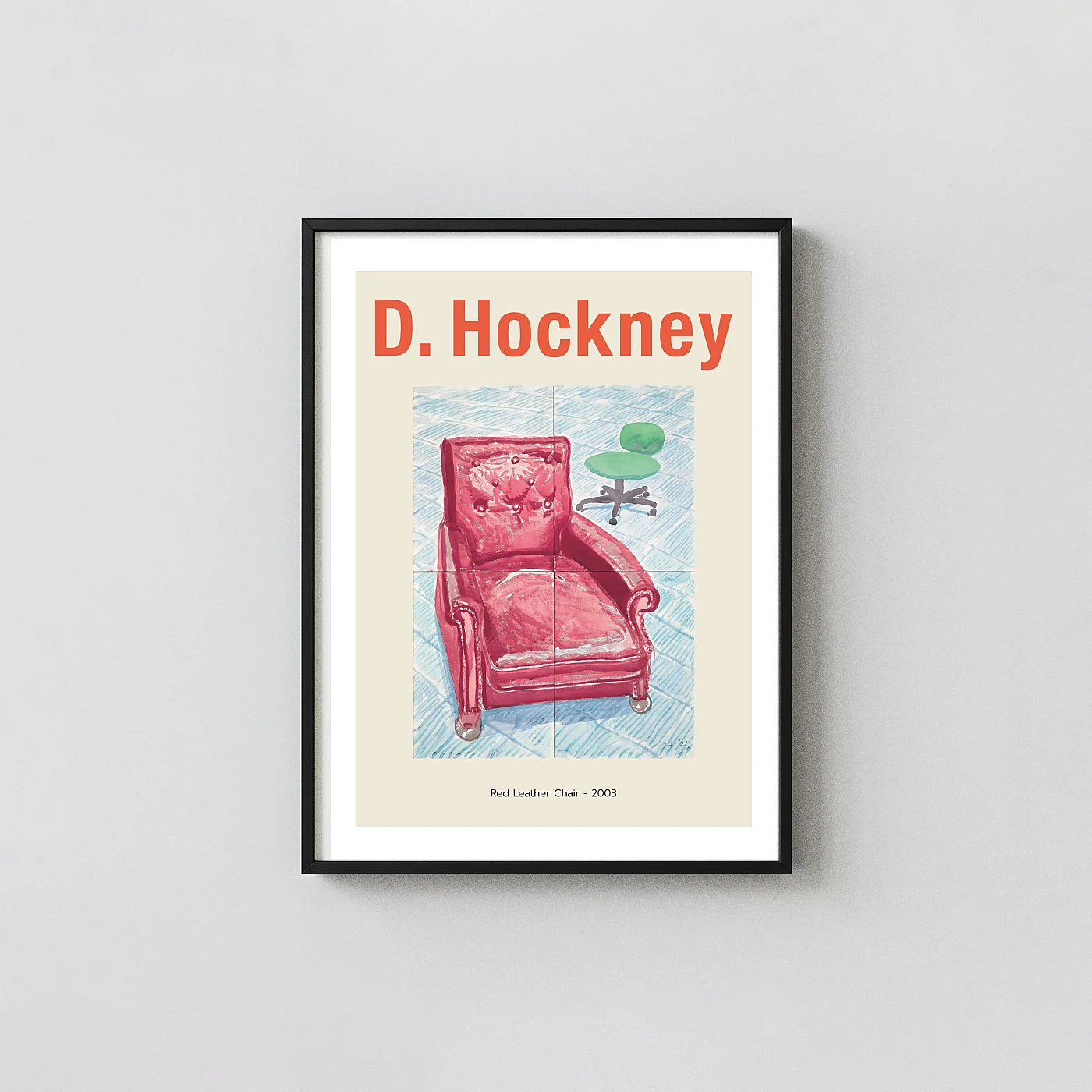 - Gallery feel: David Hockney art print Red Leather Chair 2003 Art | Iconic Modern brings classic art language into a modern room with clean reproduction and balanced wall presence.
