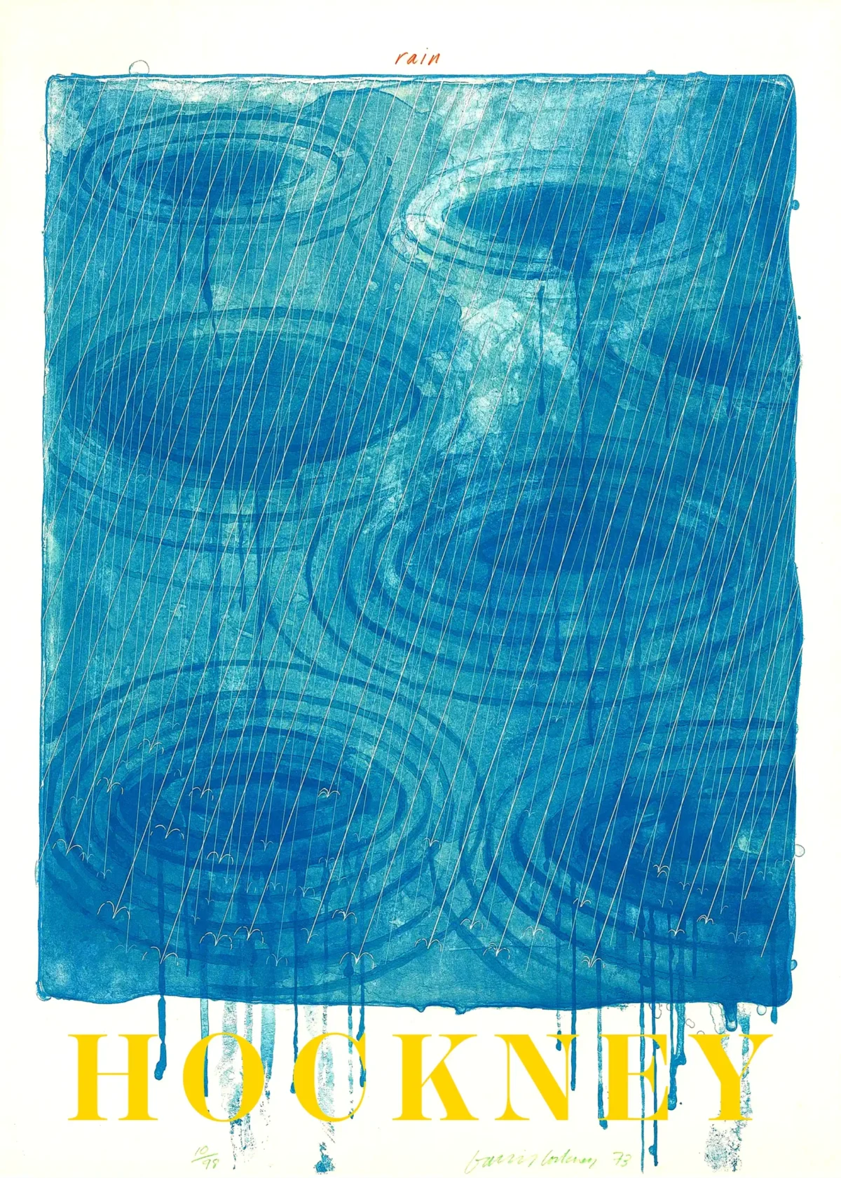 David Hockney ‘Rain’ Print (1973) – Abstract Blue Water Ripples Art Poster