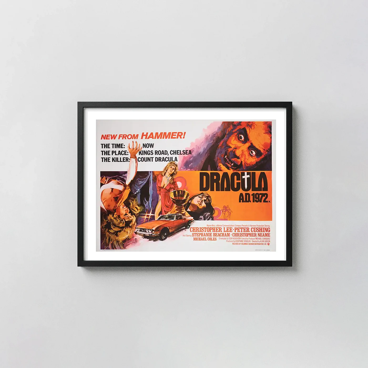 Dracula A.D. 1972 Movie Poster Hammer Horror Vintage is built for buyers who want movie posters with real wall presence, not filler decor. The print is available in multiple sizes, with digital download support for faster custom framing.