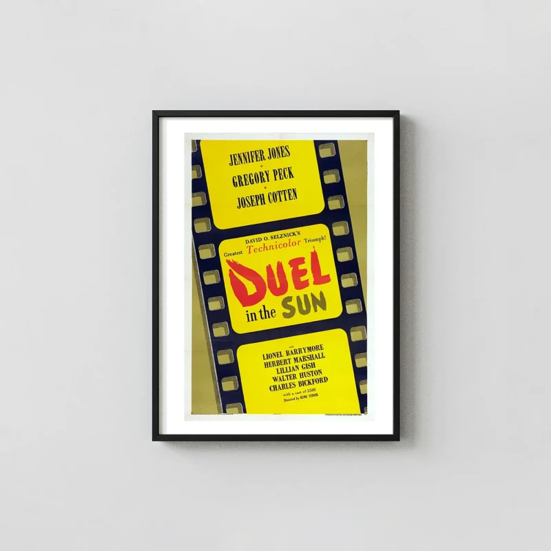 Relive the classic Western melodrama with this Duel in the Sun 1946 Movie Poster. Featuring the iconic film strip design and vibrant color palette. Premium quality print. Perfect decor for classic film fans.