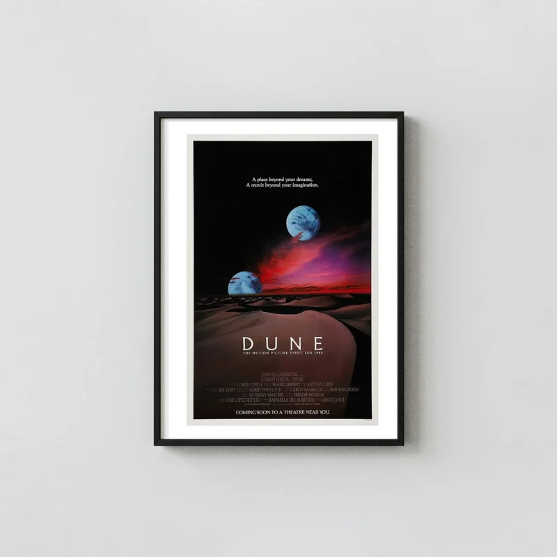Vintage Movie Poster inspired by Dune (1984). Available as Digital Download or museum-grade poster prints in multiple sizes (9×11 to 28×40).