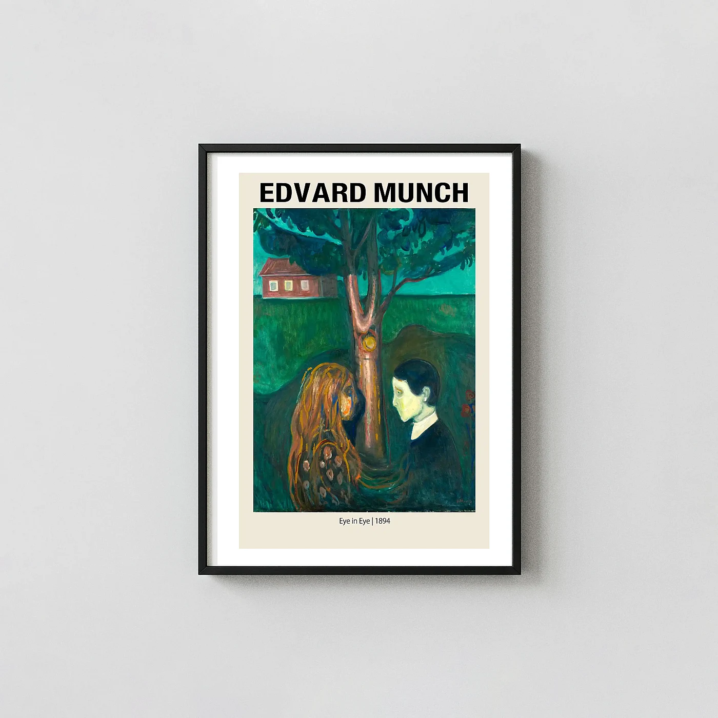 - Gallery feel: Edvard Munch "Eye in Eye" (1894) Poster Expressionism brings classic art language into a modern room with clean reproduction and balanced wall presence.