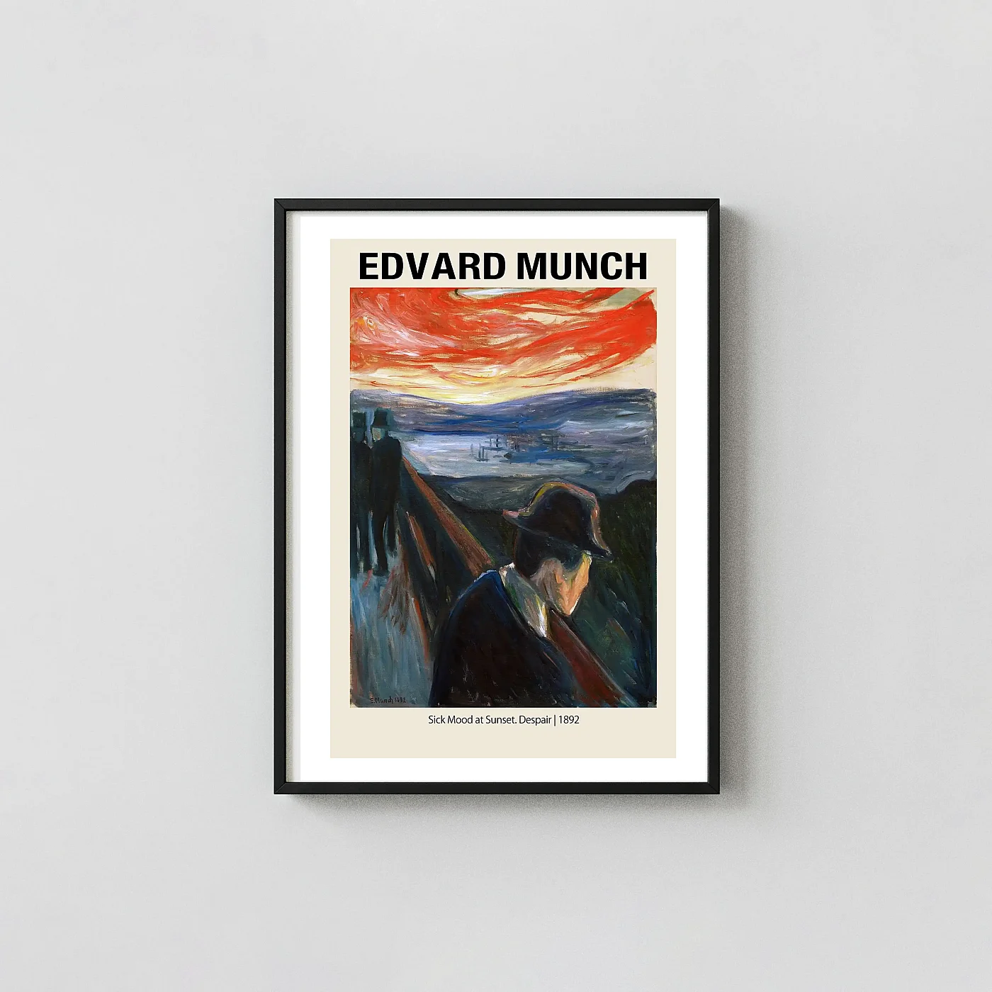 - Gallery feel: Edvard Munch "Sick Mood at Sunset" (1892) Expressionist classic Art Poster brings classic art language into a modern room with clean reproduction and balanced wall presence.