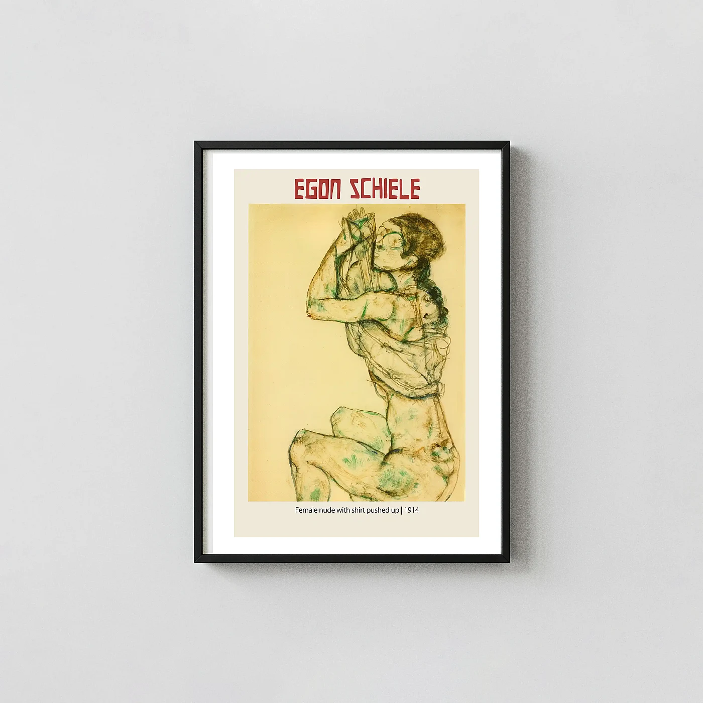 - Gallery feel: Egon Schiele Art Poster "Female Nude with Shirt Pushed Up" (1914) Expressionist Drawing brings classic art language into a modern room with clean reproduction and balanced wall presence.