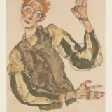Why Egon Schiele Self-Portrait with Striped Armlets (1915) Expressionist art print works for art lovers and collectors