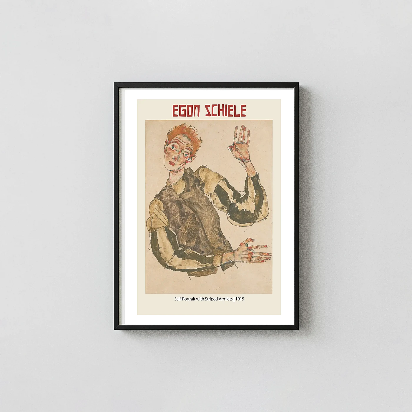 Egon Schiele Self-Portrait with Striped Armlets (1915) Expressionist art print is built for buyers who want egon schiele posters with real wall presence, not filler decor. The print is available in multiple sizes, with digital download support for faster custom framing.