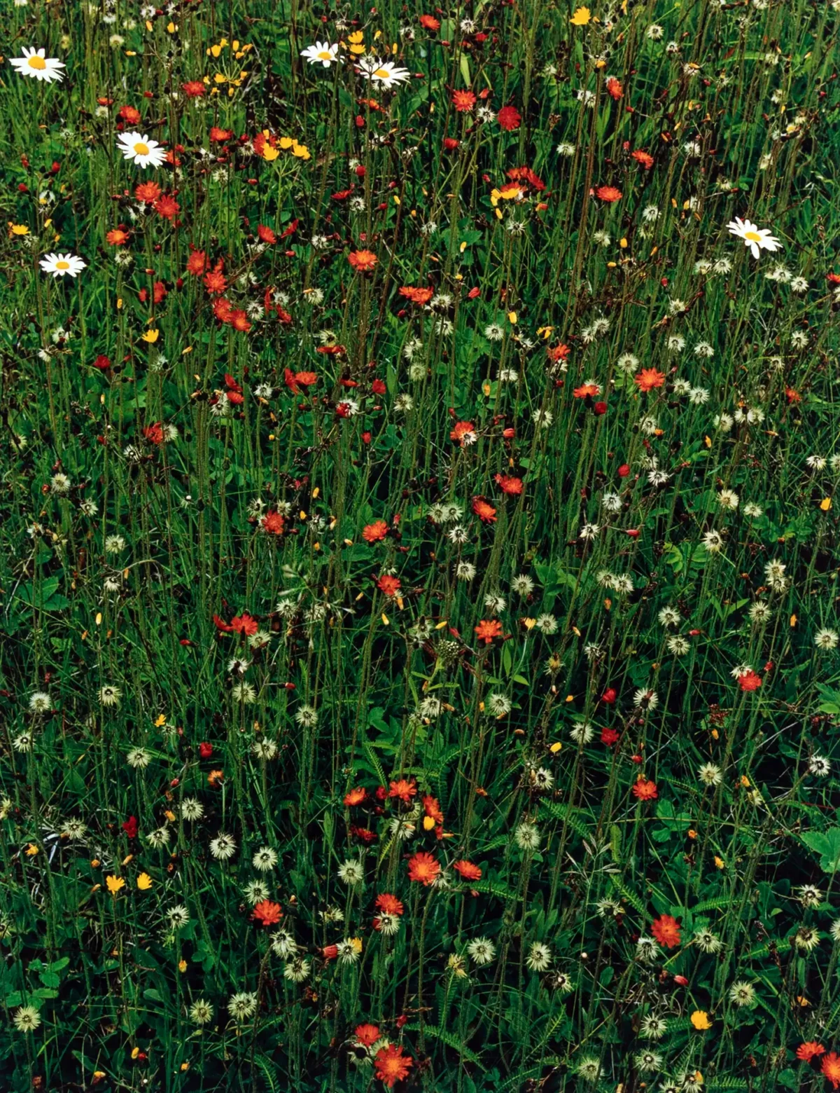 Celebrate the intricate beauty of the natural world with this stunning photographic poster by the master of color nature photography, Eliot Furness Porter. Known for his pioneering use of dye transfer printing, this piece captures a dense, vibrant wildflower meadow in exquisite detail. The intense saturation of the deep green grasses, contrasting with pops of brilliant red, white, and yellow blossoms, creates a captivating textural piece that brings the outdoors into your living space. This image exemplifies Porter’s dedication to showing the environment as an ecosystem of subtle, yet powerful beauty.