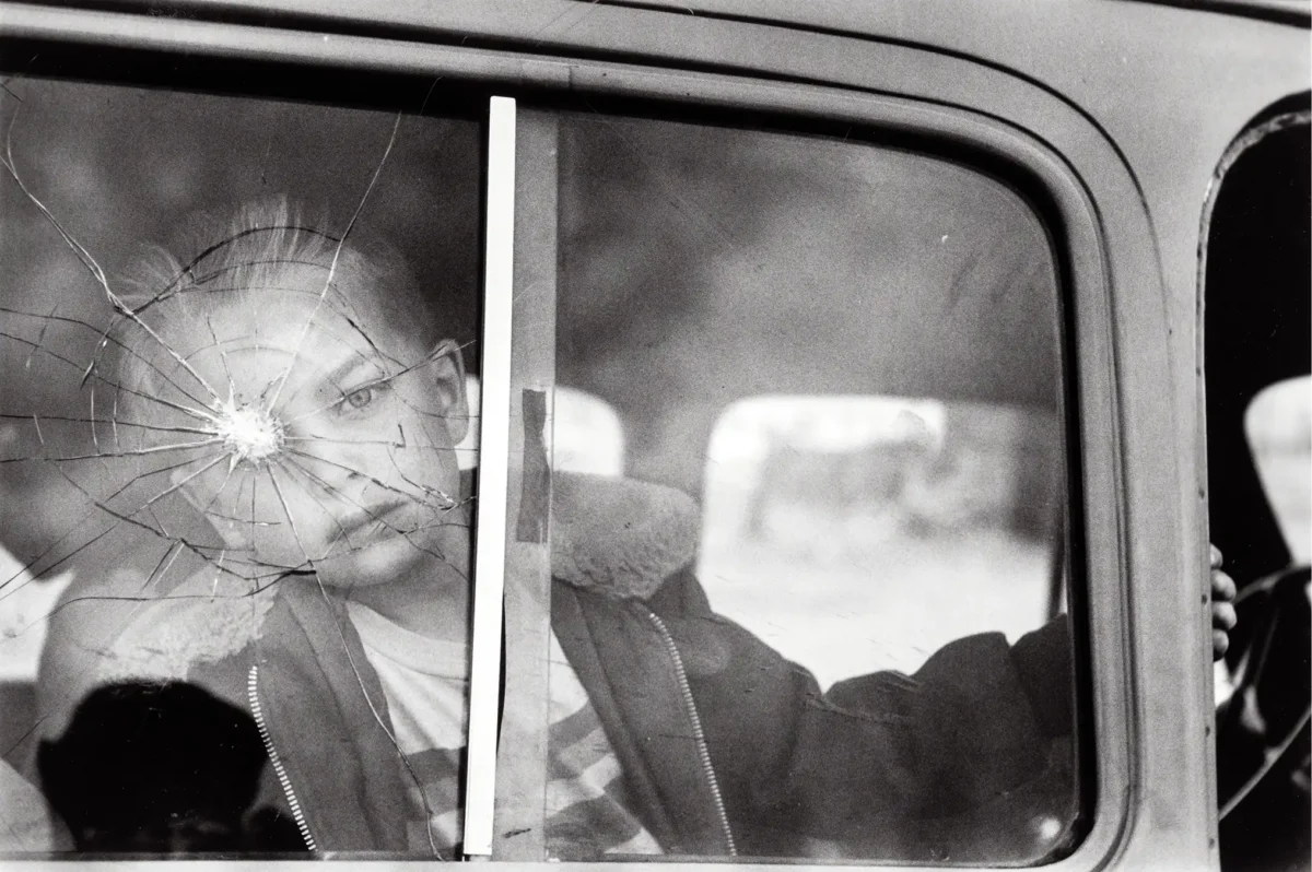 Immortalize an iconic moment of mid-century street photography with this striking Elliott Erwitt poster. ‘Child Behind Cracked Window,’ taken in Italy in 1954, captures a raw, intense moment. The shattered glass of the car window dramatically frames the subject’s eye, creating a powerful, unsettling, and unforgettable portrait that is a true testament to Erwitt’s genius for finding humanity and tension in everyday scenes. This black and white wall art print serves as a compelling centerpiece for any sophisticated collection.