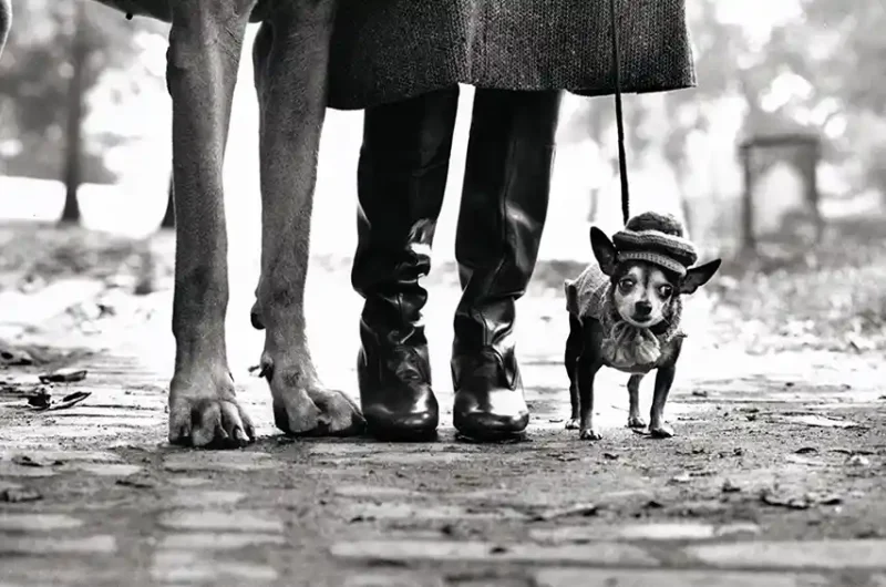 Elliott Erwitt’s iconic “Dog Legs” poster captures the humorous size contrast of a Chihuahua and Great Dane in NYC. Premium quality wall art. Shop today!