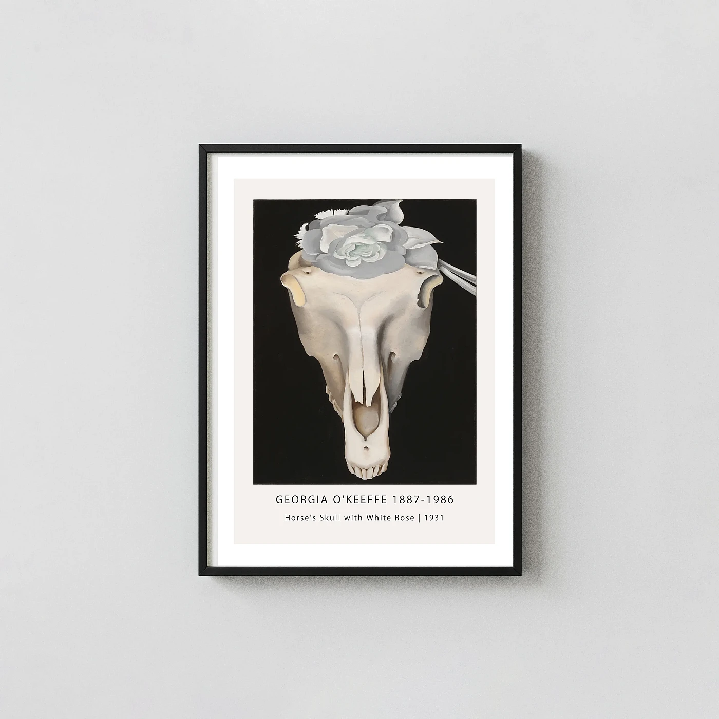 - Gallery feel: Exclusive Georgia O'Keeffe art print Horse's Skull with White Rose Art brings classic art language into a modern room with clean reproduction and balanced wall presence.