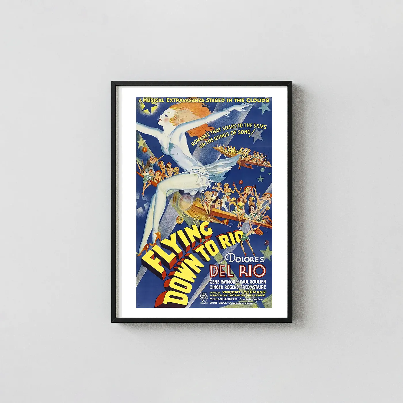 Celebrate the classic musical “Flying Down to Rio” (1933). This premium Art Deco movie poster features Dolores Del Rio, Ginger Rogers, and Fred Astaire. Perfect gift for classic film fans.