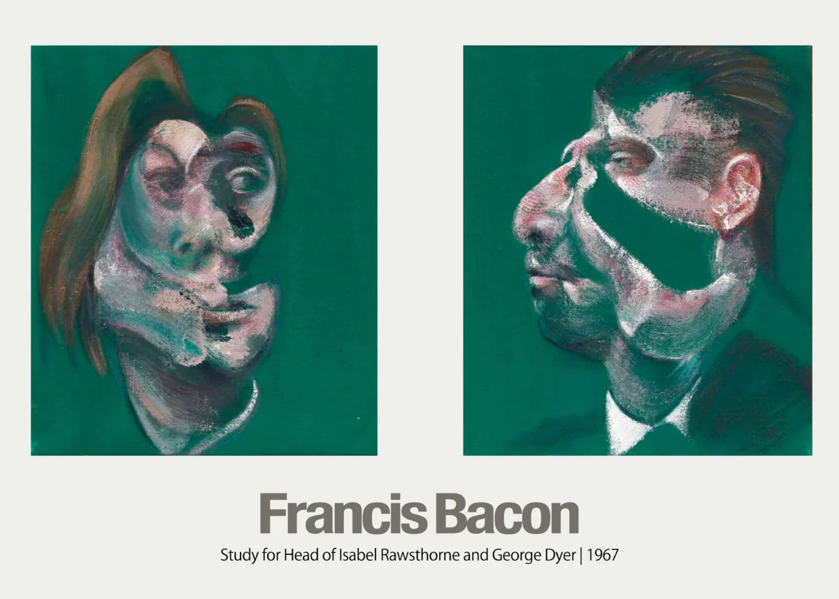 Capture the raw intensity and powerful emotion of one of the 20th century’s most defining artists with this Francis Bacon poster. This exceptional wall art print reproduces the iconic “Study for Head of Isabel Rawsthorne and George Dyer” (1967). This dual portrait showcases Bacon’s signature style—two distorted, deeply psychological heads emerging from a vivid emerald green background. It’s an essential piece for any collector seeking to bring modern, post-war abstract art into their home decor. Celebrate the complex relationships and profound expressionism inherent in Bacon’s masterpieces.