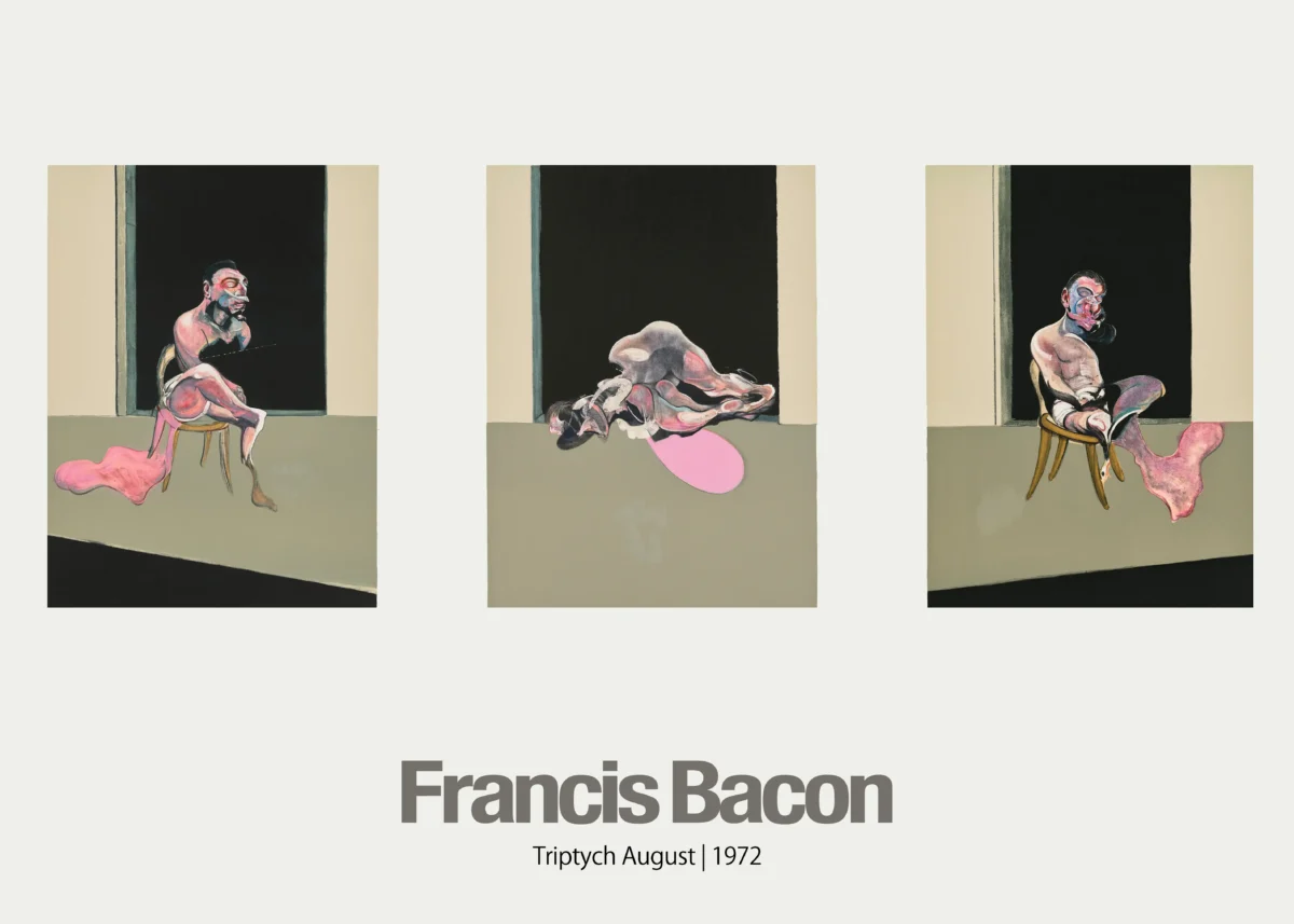 Capture the raw intensity and emotional power of Francis Bacon’s celebrated **Triptych, August 1972**. This piece, created shortly after a personal tragedy, stands as one of the most significant and defining works of modern art expressionism. Featuring three panels—two distorted figures on chairs flanking a central, formless mass—this museum-quality **poster** brings Bacon’s stark visual language and psychological depth right into your living space. It is essential **wall art** for anyone who appreciates mid-century masters and post-war figurative painting.