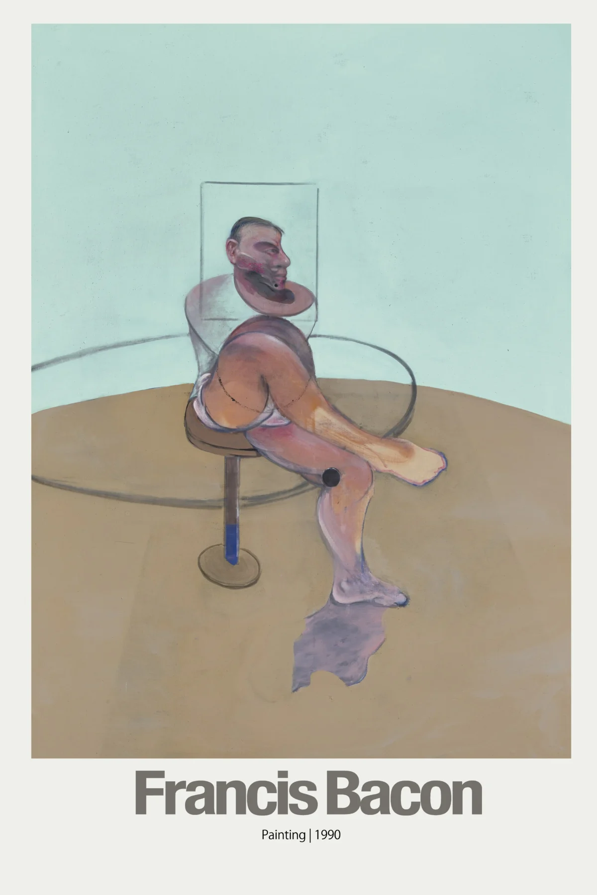 Capture the intensity and psychological depth of one of the 20th century’s greatest artists with this stunning Francis Bacon Poster featuring his late work, “Painting 1990.” This essential piece of expressionist wall art captures a seated, isolated figure, rendered with Bacon’s signature technique of distortion, vibrant color washes, and raw emotion. The figure appears confined within a subtle geometric framework against a striking cool mint and warm taupe background, making this print a bold statement piece for any serious art collector or enthusiast of contemporary fine art.