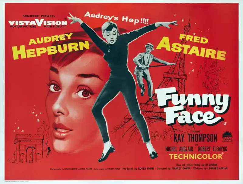 Step into the iconic world of high fashion and romance with this breathtaking Funny Face movie poster. Released in 1957, this classic musical stars the unforgettable duo, Audrey Hepburn and Fred Astaire. This vintage artwork captures the film’s vibrant energy, showcasing Hepburn in her signature black beatnik outfit and dynamic dance pose, set against a stunning, bold red backdrop that emphasizes her famous close-up portrait. It’s a spectacular piece of retro film history that celebrates one of Hollywood’s most beloved screen legends and the charm of Paris.