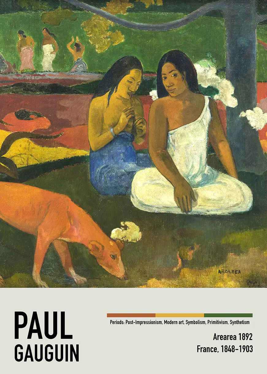 Whether you are an art historian or a casual admirer of the Post-Impressionist movement, the Gauguin Arearea Print remains a focal point of aesthetic interest. The balance of human figures, animals, and flora creates a rhythmic composition that continues to influence designers and artists today. By focusing on the interplay of color and form, this print honors Gauguin’s desire to find a new visual language that spoke to the soul through simplified shapes and intense hues.