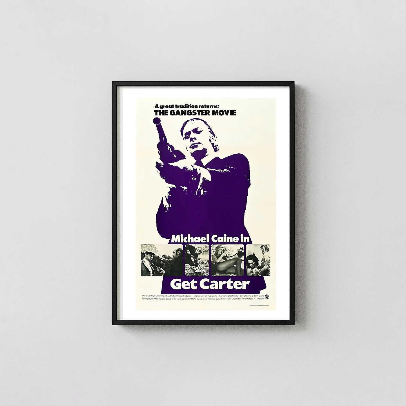 Own the iconic Get Carter poster featuring Michael Caine’s silhouette in stunning retro purple. Premium quality wall art, perfect for film buffs. Shop now!