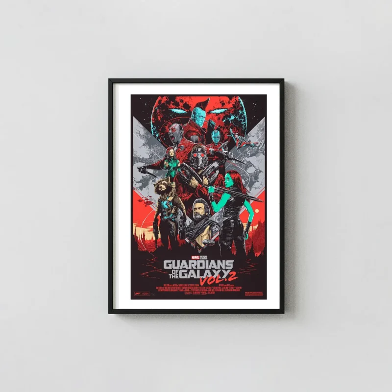 Celebrate the dysfunctional but beloved cosmic heroes of the MCU with this breathtaking collector’s art poster for Guardians of the Galaxy Vol. 2. This dynamic design captures the high-stakes emotion and signature visual style of James Gunn’s sequel, showcasing the core team—Star-Lord, Gamora, Drax, Rocket, and the adorable Baby Groot—alongside key figures like Yondu, Nebula, and the powerful Ego the Living Planet.
