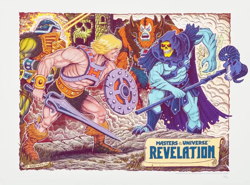 Celebrate the continued saga of Masters of the Universe with this premium art print. Whether you grew up shouting “I have the Power!” or discovered the epic clash through the Kevin Smith-led continuation, this poster perfectly encapsulates the high-stakes drama of Revelation. It is an exceptional addition to any collection, ideal for displaying the everlasting fight between good and evil in a truly unique, highly stylized format.