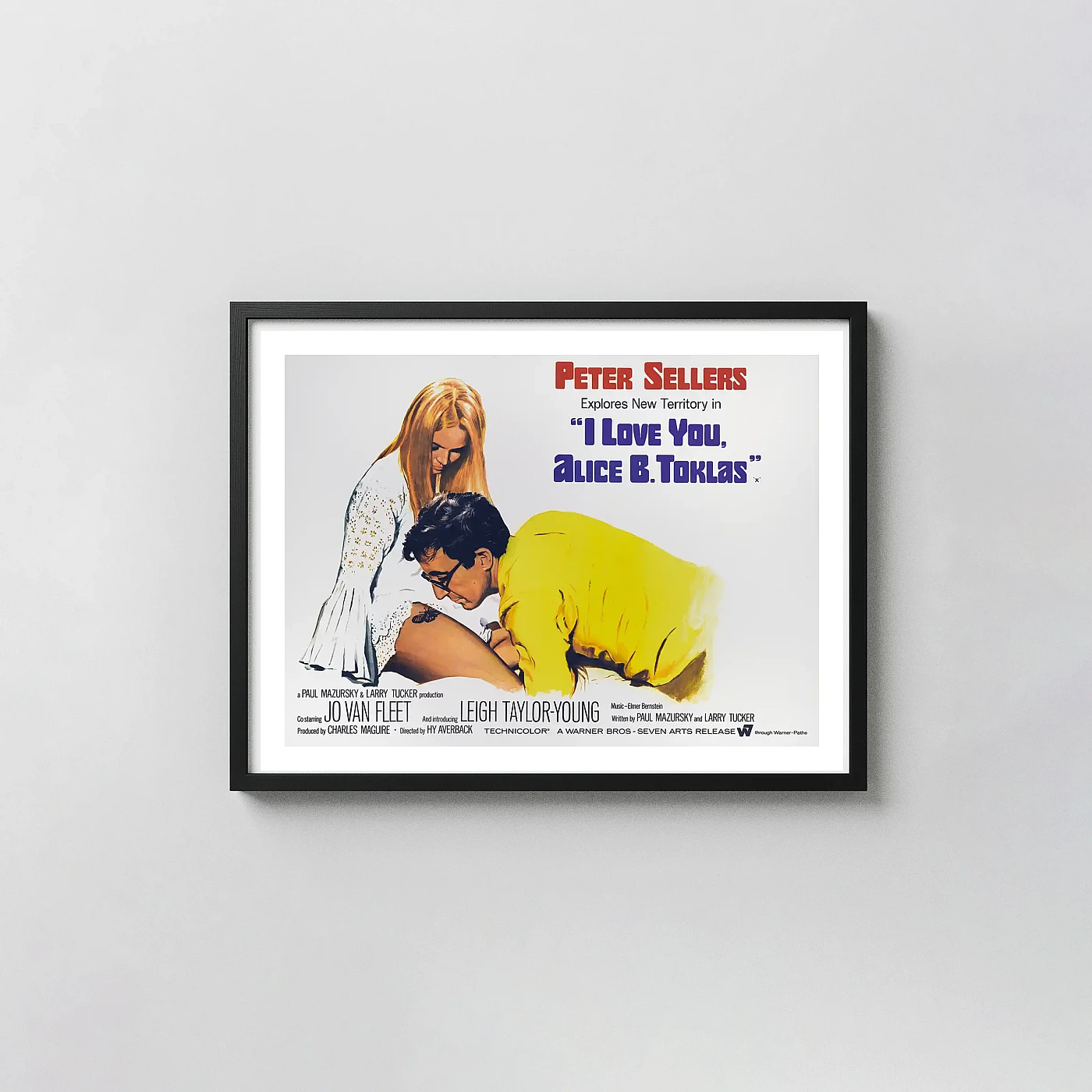 Celebrate the Peter Sellers classic “I Love You, Alice B. Toklas.” This iconic 1968 Movie Poster features vibrant 60s pop-art style. Premium quality wall art, perfect gift for classic film lovers. Shop now!
