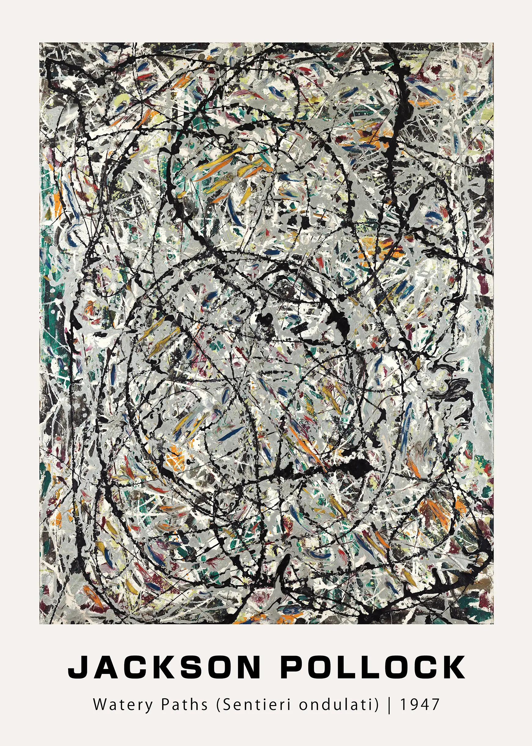 The year 1947 was a turning point for modern art, and this Jackson Pollock print represents the apex of that shift. It was during this period that Pollock moved away from figurative elements and surrealist symbols to embrace pure abstraction. The title, Sentieri ondulati, suggests a fluid, aquatic movement, mirroring the way the paint flows across the surface like currents in a stream. Owning a Jackson Pollock print from this era provides a window into the Post-War art scene in New York, where traditional boundaries were being dismantled in favor of emotional immediacy and physical spontaneity.