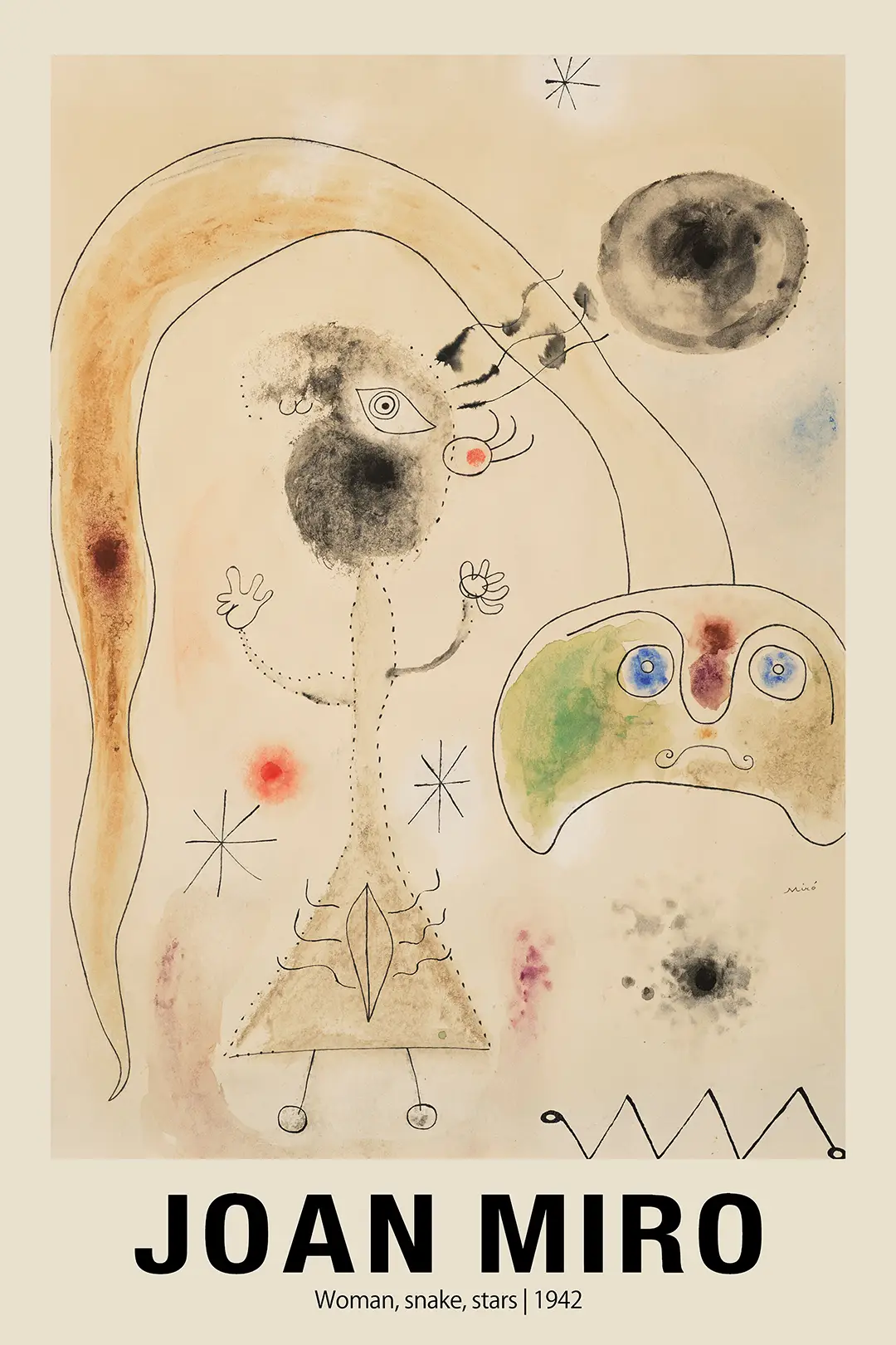 Joan Miro poster – Woman Snake Stars 1942 Surrealist Wall Art