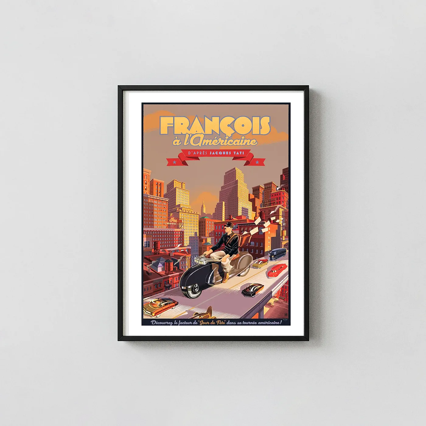 Jour de Fête Poster “François à l’Américaine” by Laurent Durieux | Vintage French Cinema Art