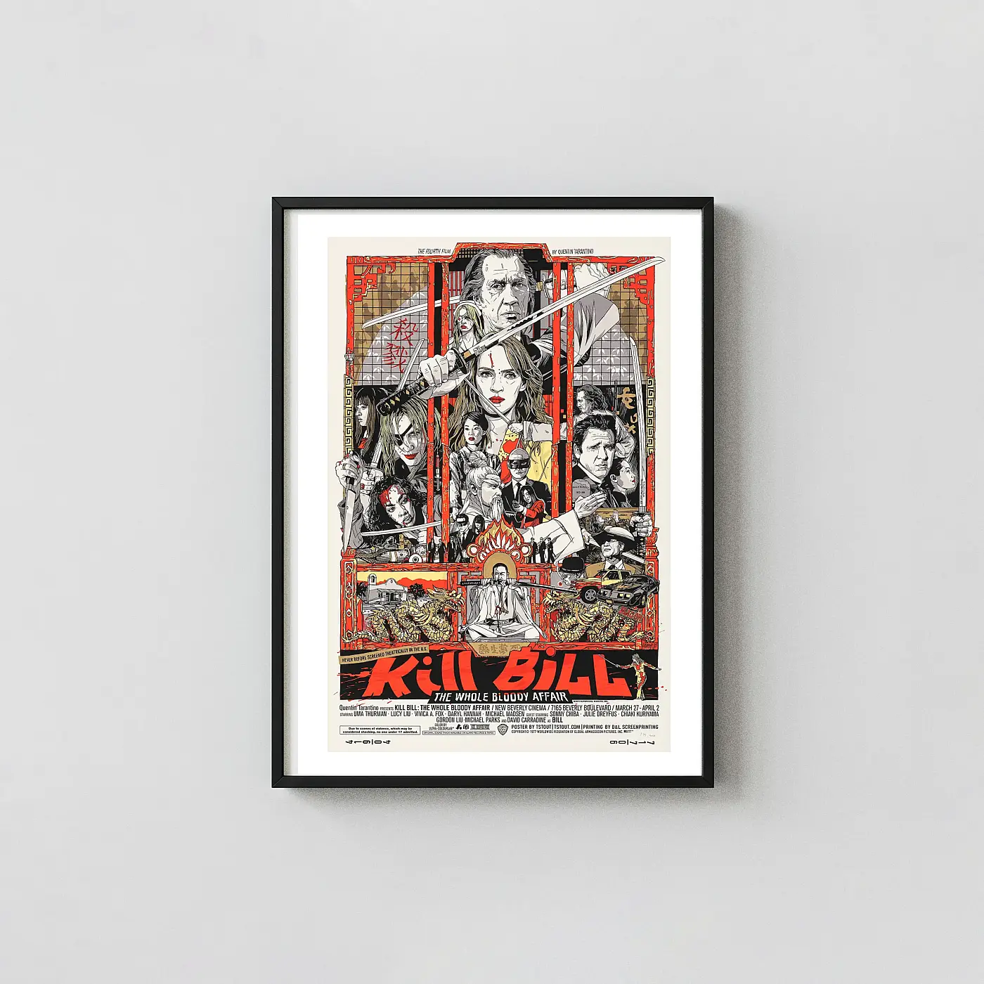 Own the iconic Tyler Stout Mondo print for Quentin Tarantino’s Kill Bill: The Whole Bloody Affair. Featuring The Bride, Bill, and the Deadly Viper Assassination Squad in stunning detail.