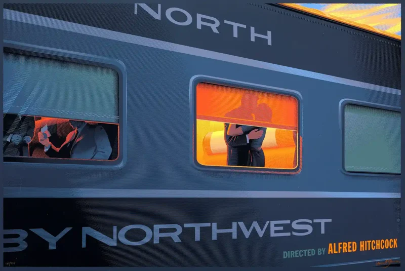 Own the iconic Laurent Durieux poster art for Alfred Hitchcock’s classic spy film, North by Northwest. Featuring the unforgettable train sequence and romantic tension.