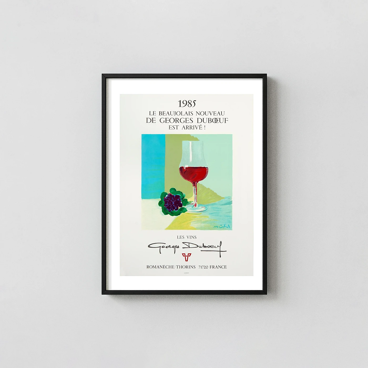 - Old-school advertising character: Le Beaujolais Nouveau Georges Duboeuf Vintage Wine Poster Roger Muhl 1985 has that retro commercial-poster feel that works especially well around bars, kitchens, lounges, and studios.