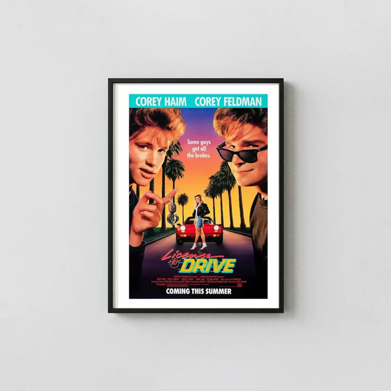 Relive the 80s classic with this License to Drive Poster featuring Corey Haim & Feldman. Premium quality wall art. Perfect gift for retro movie fans. Shop now!